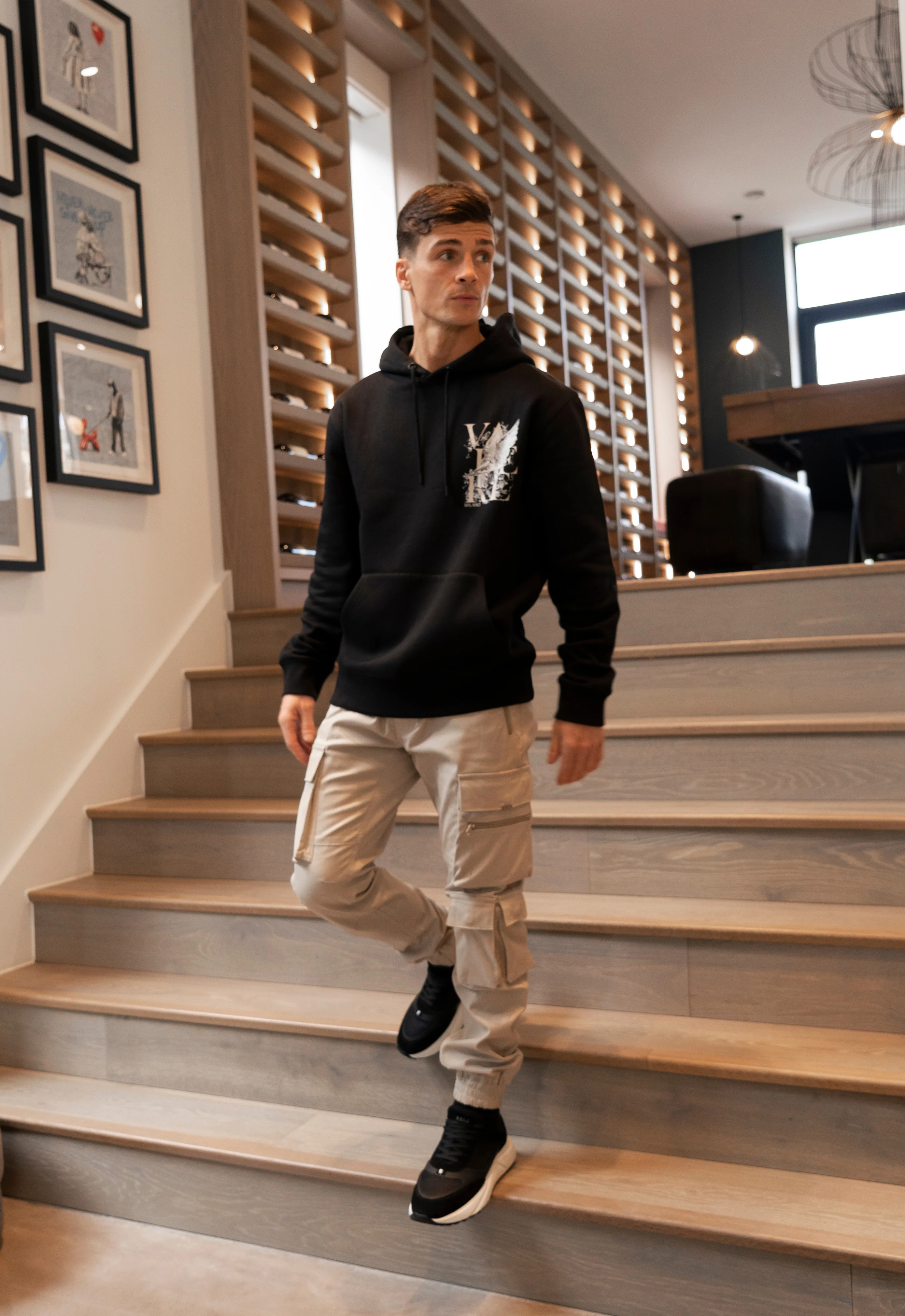 Classic stone cuffed cargo styling, with elasticated cuff and elasticated waistband.